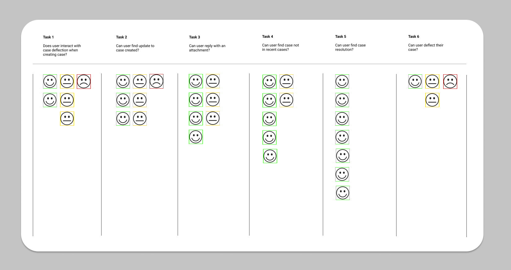 We translated these baseline findings into new concepts aimed at case deflection (answering common questions through self‑service before a case is created) and clearer end‑to‑end task support. In usability testing, I evaluated six core tasks with clickable prototypes designed by one of the Snr. UX Designers: